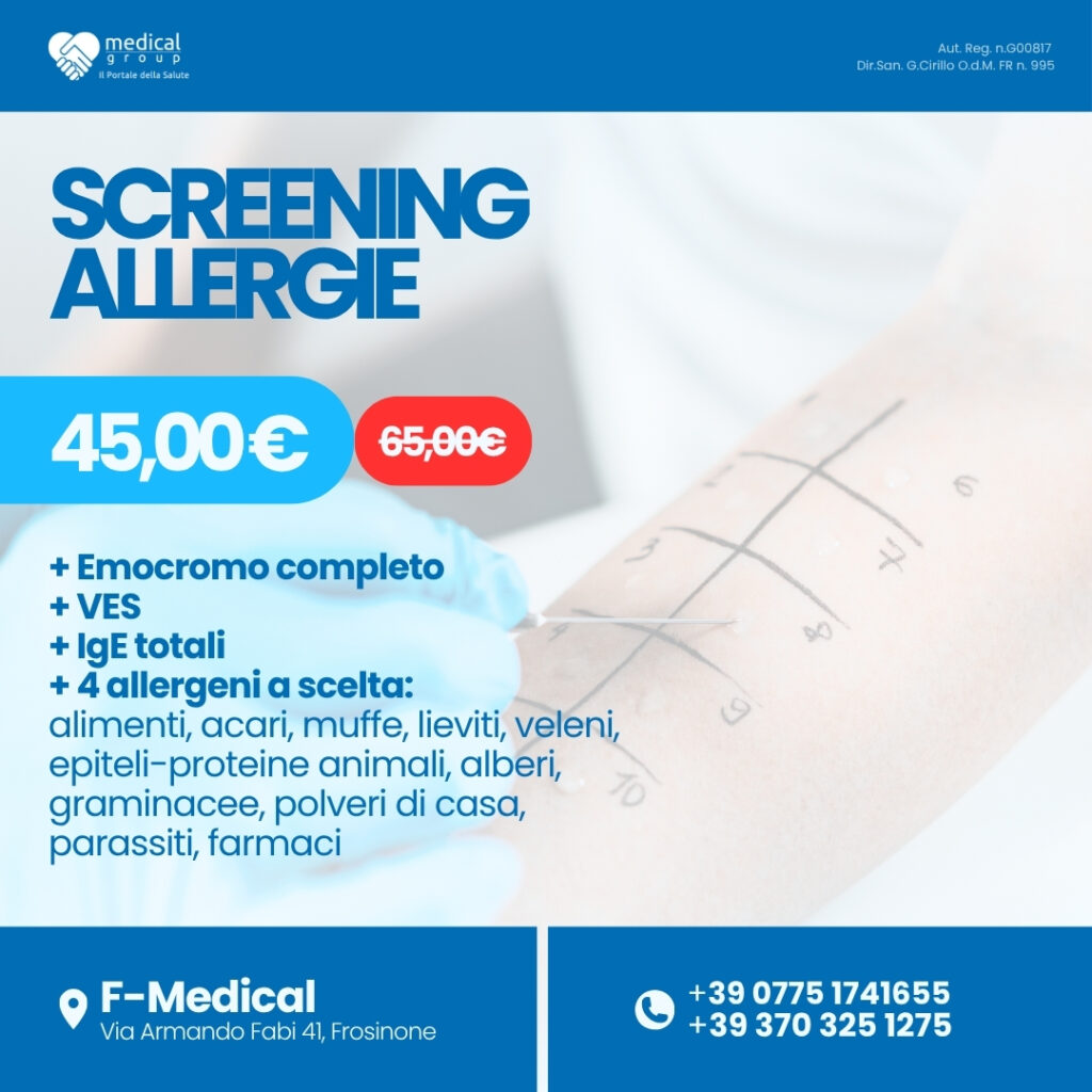 Agrostis stolonifera, alopecurus pratensis, ambrosia elatior, ambrosia gigante, ambrosia psylostachia, anthoxanthum odoratum, artemisia absinthium, artemisia vulgaris, canna di palude, corylus avellana, cryptomeria japon, cupressus sempervirens, cynodon dactylon, dactylis glomerata, elymus triticoides, erba cali, eucalyptus spp, faggio, falsa ambrosia, holcus lanatus, lolium perenne, margherita dei prati, nappola, noce americano, parietaria judaica, phleum pratense, pinus silvestris, plantago lanceolata, platano, poa pratensis, populus spp, quercus alba, solidago virgaurea, sorghum sudanense, tilia cordata, urtica dioica